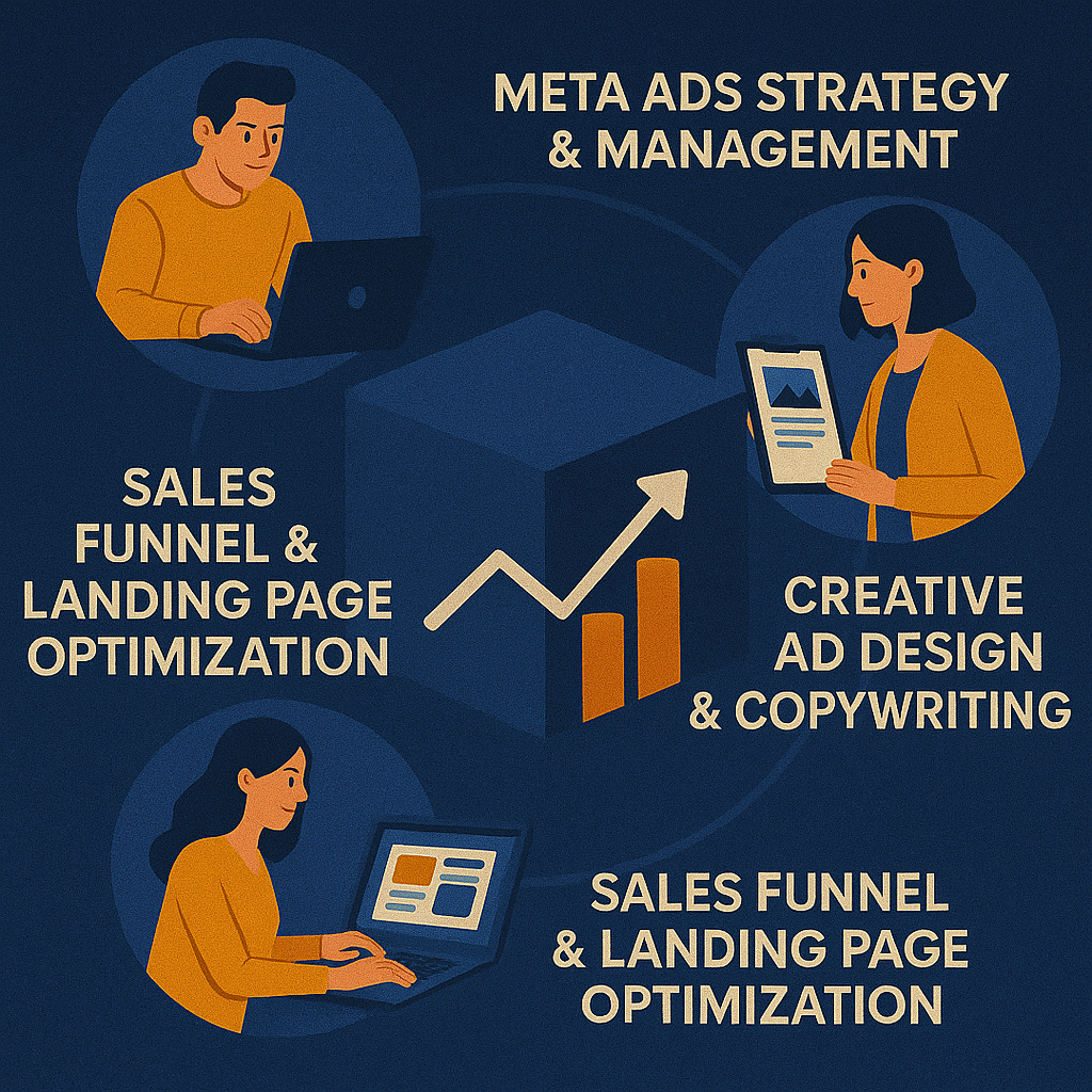 When you partner with ADB Media Solutions, we dive deep into your brand, goals, and audience to craft a custom growth plan that’s built to scale. From expert Meta ad strategy and world-class creative to optimized funnels that convert, we handle everything — so you can focus on running your business while we focus on driving measurable results.